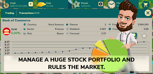 In this business game you have tons of opportunities to make money: stock trading, real estate, rent, factories and much more.
