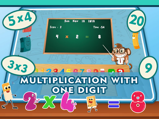 It is a free learning game designed to teach young children numbers and mathematics. It features multiplication activities step by step that young students will love to play, and the more they do the better their math skills will become! The aim is to help preschoolers, kindergarteners and all young children to learn and to multiply numbers and start training with different problems. They'll have a great time indulging in math activities, and you‘ll have a great time watching them grow and learn.