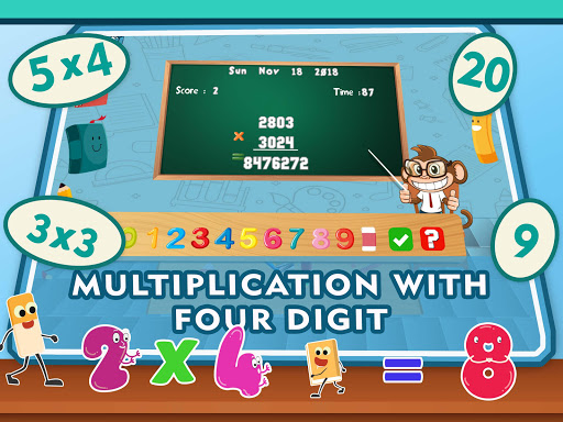 Maths Multiplication game for kids is fun way of learning multiplication. With the help of this multiplication for kids app, your children can quickly and easily understand the multiplication rules and memorise it without much efforts. This app is great for parents and teachers to teach children while keeping them engaged and interested in maths kids math games.