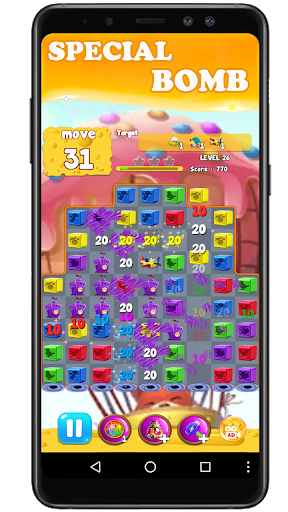 And clear all various missions. Solve puzzles with quick thinking and smart moves, and be rewarded with delicious rainbow-colored cascades and tasty toy bomb combos!