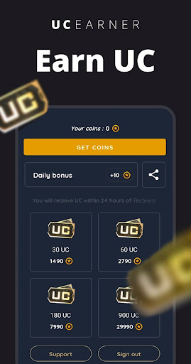 This app bring uc earn daily coins when your coin reach then redeem your UC.