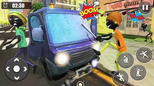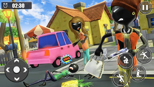 Are you ready to war with the crime? Battle multicolored gangsters and bank robbers & pocket cutters in bus and on street doing crimes in day light in Stick Man Rope Hero Gangster Mafia City free scary robber open world games with funny ragdoll physics!