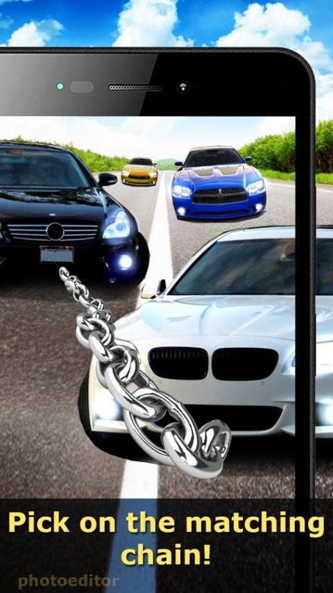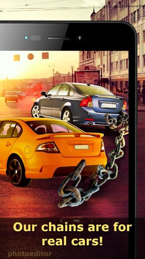 Take a photo or select picture from the gallery. Choose a suitable chain from the collection of photo editor and add it to the image with a couple of clicks! Now on the chain not only cars, but everything you want!
