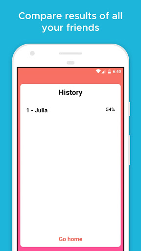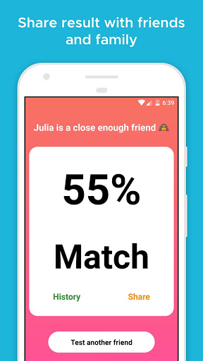 You can also check the history of friends you tested with the results, click on the emojis to see the percentage!
