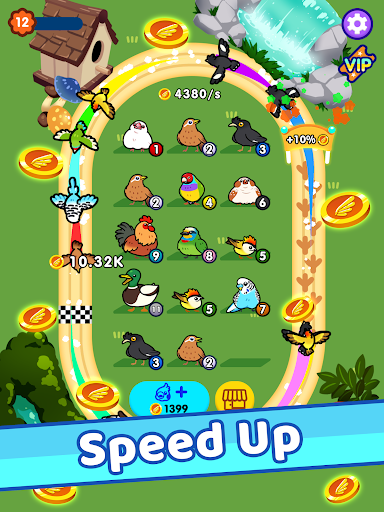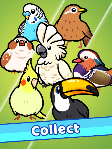 Merge your birds and combine them to upgrade. Discover species such as parakeet, macaw, cockatiel, hornbill, hummingbird, grass owl, penguin, cockatoo, mandarin duck, pheasant, canary, and more.