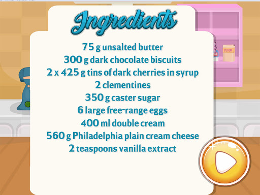 Make this cake chocolate from scratch in cooking gmaes. Yes, you can do it with chocolate flavor for your yummy birthday cake in free cooking games. Chocolate, Small chocolate pieces, Okay~ Choose whatever you like in cooking for girls.