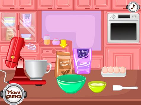 Description of cooking games macaroons on kitchen