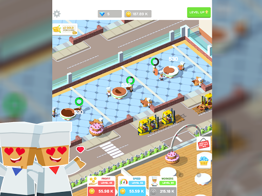 Develop your cakes factory by constructing new kitchens and buildings.