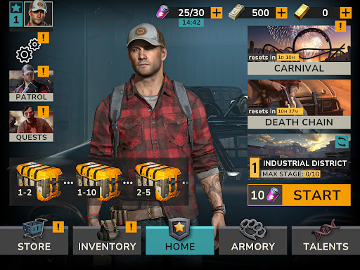 Complete missions to unlock a variety of powerful weapons. Take zombies down and collect weapons dropped during the fight. Survive and thrive after the apocalypse with unique weapon choices. Upgrade your hero with the right equipment and be the ultimate survivor.