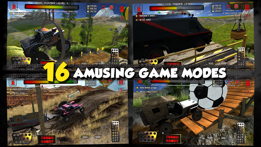 - 16 different game modes: Hill Climb, Fuel Madness, Gentle Push, Time Trial, Football, Balloon Collector, Volcano Eruption, Rocket Hunter, Pack Delivery, Mine Field, Log Survivor, Balloon Finder, Golf Ball Thunderstorm, Time Chaser, Ring Hunter and Butterfly Catch