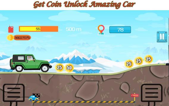 - Use the mountain car hill racing controls on the screen for the racing car