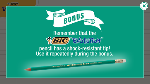Make the ball bounce by drawing platforms with the shock-resistant BIC® EVOLUTION™ pencil and by erasing the obstacles with the eraser. Avoid falling in the sea and increase your score as much as possible in the game's BONUS !
