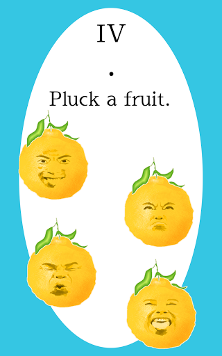 The faces the fruits become depend on the emotions the fruits bear when during growth.