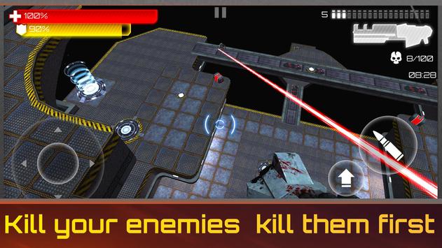 - Take a shotgun, laser rifle or rocket launcher and kill all enemies on the battle arena;