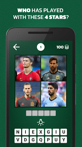 Welcome to the hardest football quiz in the world. In the game 4 Teammates 1 Player, you'll prove your knowlegde in more than 100 levels. To solve them, you'll have to guess who is the only football player in history to have played alongside the four stars that we show you.