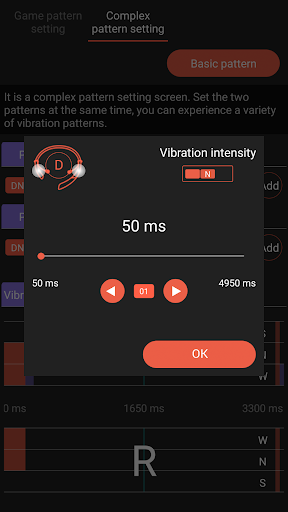 D pattern = D(Left&Right simultaneous vibration) Vibration intensity (W, N, S) Vibration constant