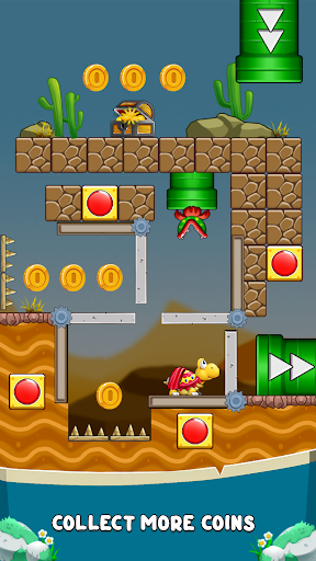 Start your treasure hunting adventure with Hero Turtle - A cute but adventurous one. In this journey, You and our hero turtle must pass so many threats to collect many coins. Help him avoid the danger, go through various locations as dangerous jungle, dark underground, the hottest desert, cities, and enjoy the endless legend treasure hunting adventure. Turtle adventure world is a simple puzzle adventure game with the best graphics and sound effects. It will offer great fun to you.