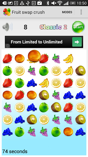 You can play in classic mode 25 or 50: 25 or 50 moves to hit your highest score and crush many fruits.
