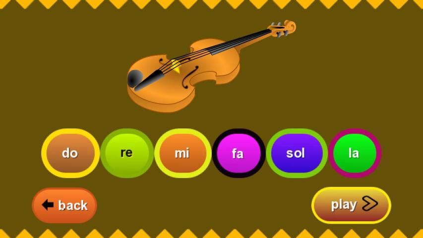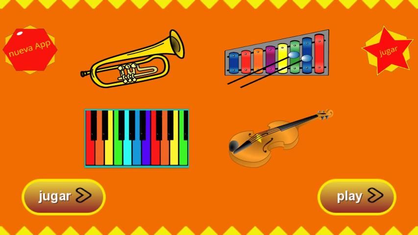- piano, xilofon, trompeta y violin. Cada instrumento tiene sonidos y representaciones.