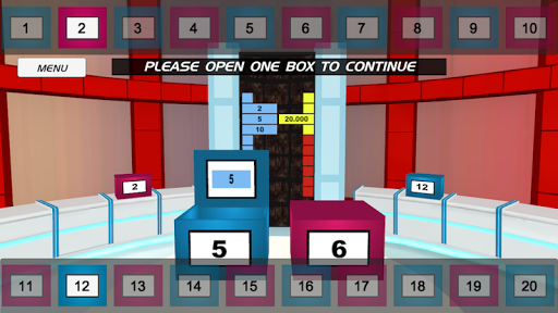 There will be 20 cases (boxes) with different amount of money inside from one cent up to one million. You will try to make the best deal / deals from the case or the banker.
