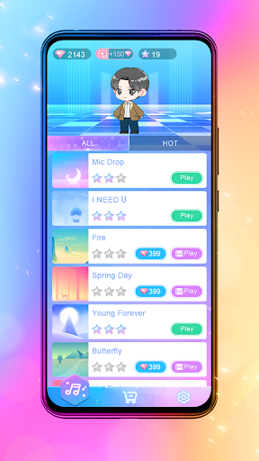 There are lots of collection of movements of your great BTS heroes. You can switch those collections as you like and make BTS heroes dancing as you play the piano game.