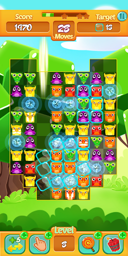 Slide and Match between 3 or more colourful birds and Blast them to achieve your goals.
