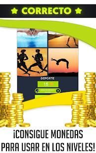 Cuando inicies el juego, deberás seleccionar el nivel apropiado o bien en el que te hayas quedado. A continuación en la pantalla de tu terminal te aparecerán 4 fotos las cuales tienen algo en común, un rasgo común entre ellas. Una palabra que con tu ingenio deberás adivinar. Y hay de muchos tipos en este juego freemium.