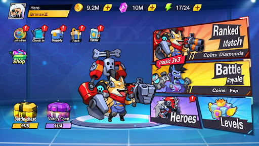 Different heros have different attributes and special skills, choose the mech fighter that suits you or you like, and constantly upgrade the fighter to maximize his combat effectiveness.