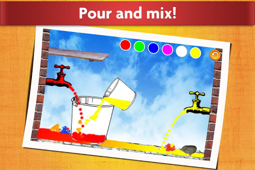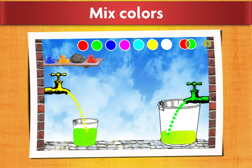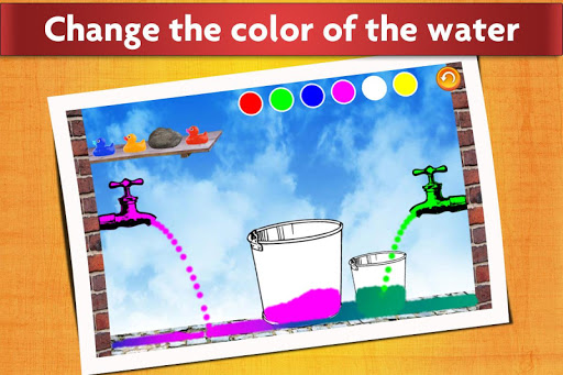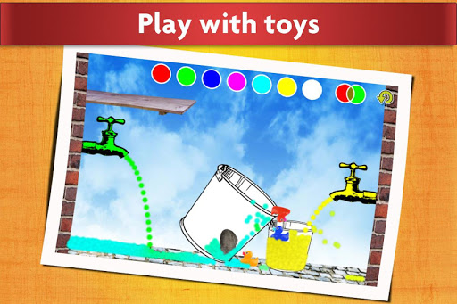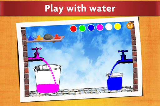 This is an open-ended game, where little kids can play around with water. Turn on and off the taps, change the color of the water, move around the buckets, pour water, and play with the little rubber ducks.