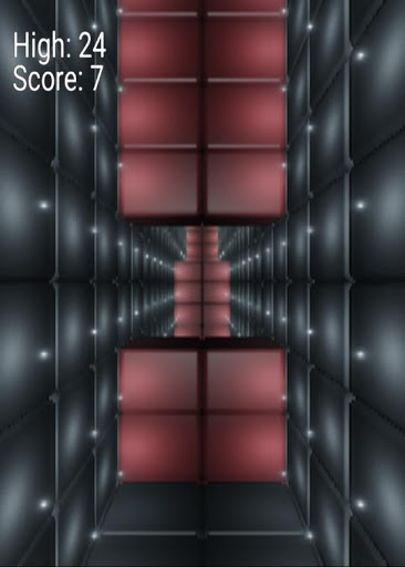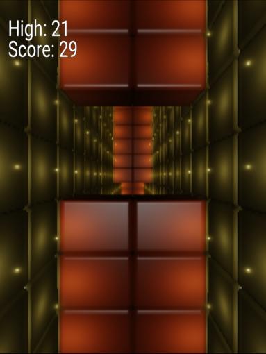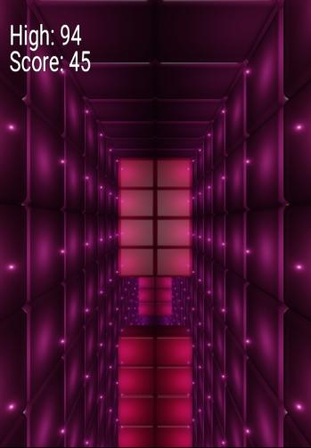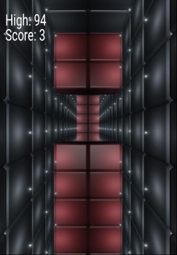 A simple jumping game with a first person perspective. Try getting a high score by making it as far as possible without jumping into any walls. The lights necessary for you to see where you are going are however fading quickly. You turn the lights back on by jumping. But beware, if you jump to often you will end crashing into the walls.
