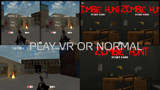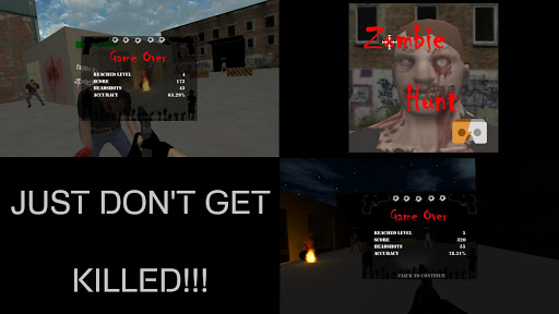 Shoot your-self through levels of zombies and become the best zombie hunter in this FPS zombie shooting game. Just rotate your head (with VR headset) or phone (non-VR mode) around and find closing zombies to shoot. No walking required.