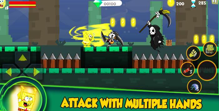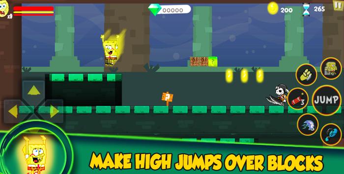 To complete the platformer diversion spongebob super Spongesshould hop and keep spongebob running Bob over numerous hindrances, battle and shoot against chibi starfish ninjas, savage Patrick sharks, dragons, skeletons, pirates, traps, felines and Snail numerous squarepants different beasts and mythical bats of Sponges adventure