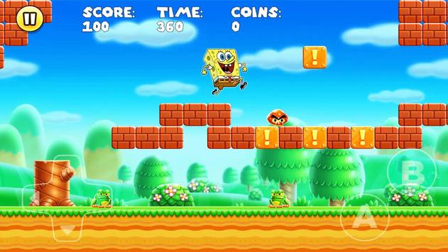 super spongebob adventure world is adventure and running game with side scrolling platform with sponge bob, patrick and squid ward spongbob as a player. You can select spongebob as player bob esponja.