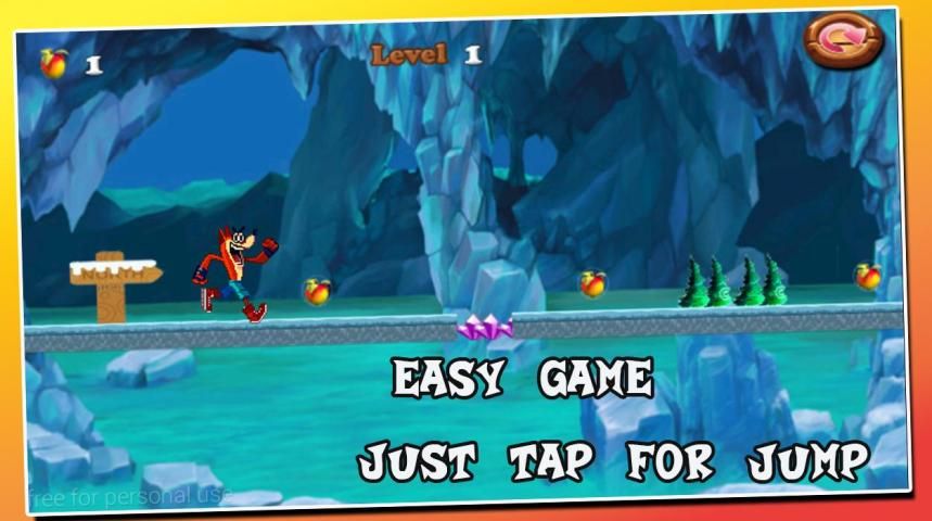 help this super hero Bandicoot jump over the jungle and up to collect the magic apples and Avoid enemies Throughout an adventure journey through the levels.