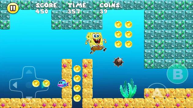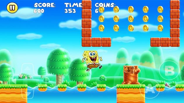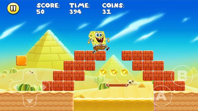 super spongebob adventure world is adventure and running game with side scrolling platform with sponge bob, patrick and squid ward spongbob as a player. You can select spongebob as player bob esponja.