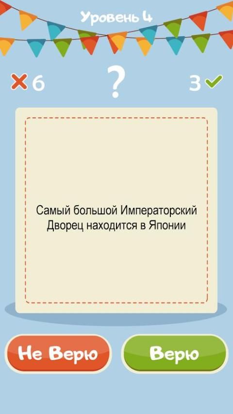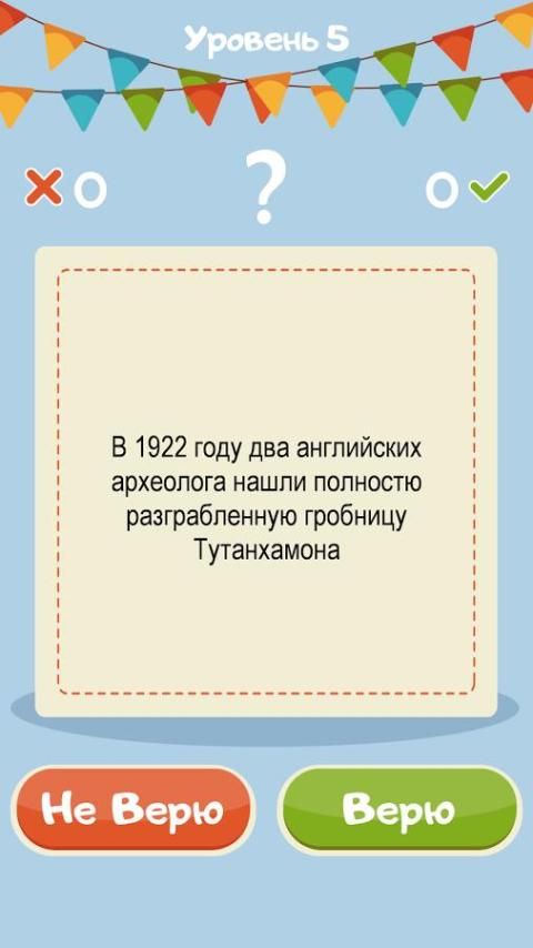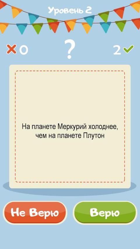 Do not Believe I Believe - the best puzzle game of a series of puzzles, "I believe I do not believe," "Yes or No", "True or False" in Russian. Only the most interesting questions on the erudition, which you need to answer, "I believe!" or "Do not believe it!" questions with detailed answers.