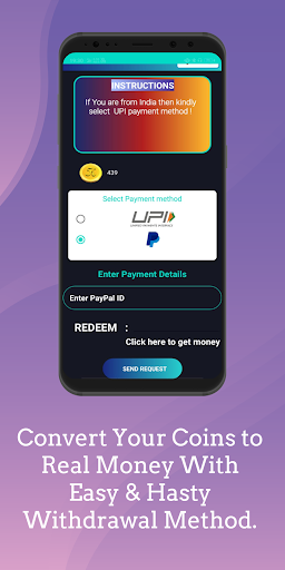 Withdrawal --> You can redeem Your coin from two withdrawal method Paypal & UPI under our withdrawal policies.