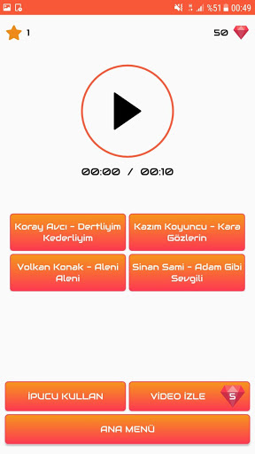 Her bölümde sana hem günümüzün hem eskilerin popüler şarkı ve şarkıcılarını karşına çıkaracağız. Ve eğer soruyu bilirsen sana Elmas hediye edeceğiz. Bu elmaslarla İpuçları satın alabileceksin!
