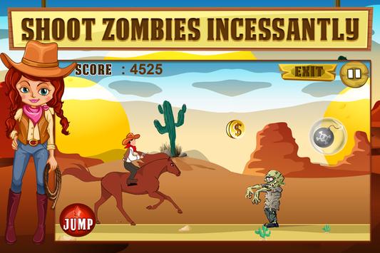 There are power-ups like horse and bomb to collect in this cowboy adventure game. Get bombs to get rid of the hordes of zombies. When you have horse, you don't need to jump for coins or fire zombies, this power-ups gives you a chance to take a short break.