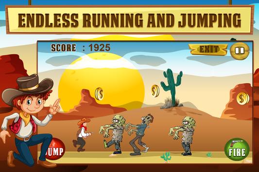 Play as a cowboy shooting zombies in Wild West. It is so easy to play. Just tap on the fire and jump buttons in time. As the cowboy running and jumping, more and more zombies confront. Don't let a zombie come near you which ends the game.