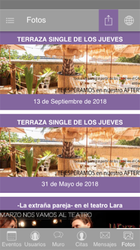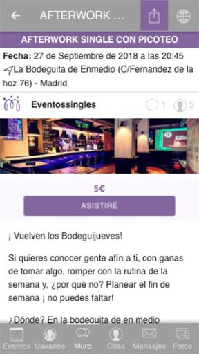 EventosSingles es una web de ocio que recopila todos los eventos que existen para personas singles, separados o sin pareja, que busquen hacer amigos, conocer gente nueva en su ciudad e incluso una nueva pareja. Cada día encontrarás diversas opciones para salir de tu casa y compartir actividades especialmente diseñadas para singles: fiestas, citas a ciegas, cenas, viajes y mucho más!. Entra a formar parte de nuestra comunidad, estate al día de los eventos que se producen en tu ciudad para singles, conoce y chatea con otras personas. EventosSingles.com es la comunidad definitiva single.