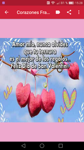 Descarga ya mismo esta aplicación y disfruta enviando frases de amor con corazones de San Valentín, demuestra lo mucho que quieres a tu pareja, sabrá valorar estas imagenes de Amor y Amistad con frases bonitas de San Valentín.