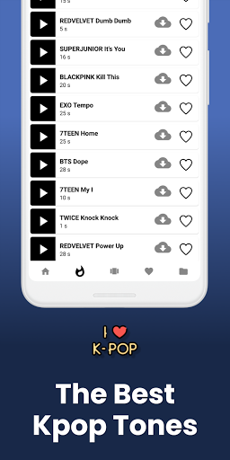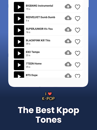 سماع أصوات KPOP من أفضل العصابات مثل: BTS، Superjunior، Big Bang، EXO، 2Ne1، نغمات مرتين، GOT7، BlackPink، سبعة عشر، Redvelvet،لانهائي، شيني وأكثر من ذلك بكثير.نضيف المزيد من النغمات كل أسبوع
