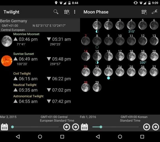 . شروق الشمس، غروب الشمس، وطلوع، moonset