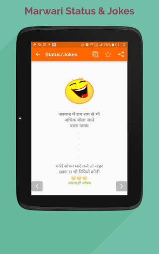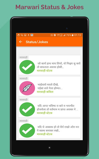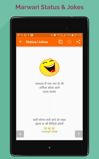 Marwadi Status & Jokes App هو تماما التطبيق حاليا. إنه تطبيق سهل الاستخدام حتى تحتوي على نسخ ومشاركة وظائف. كما يحتوي أيضا على بعض الأفكار الجيدة والنكات والقصائد.