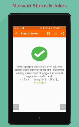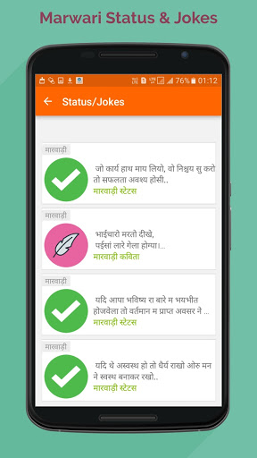 1. تطبيق "Marwadi Status" يحتوي على رسائل في لغة Marwadi المناسبة.