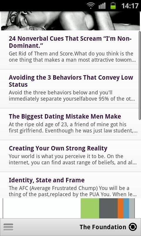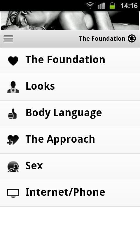 Become the Master Of Seduction! The best Android app made for men looking for love or just to get laid. Follow the Pick up artist's program and with some work you can achieve the succes of your dreams. Features a lot of pick up artist literature, articles and pictures. App features 6 chapters: -The Foundation -Looks -Body Language -The Approach -Sex -Internet and Phone Game Instead of focusing on the woman, "Master of attraction" focuses on you. That way, you can simply become a man who women think is hot, without having to think about her. Best of all, this app is completely FREE. When you learn the secrets of seduction, the logical next step is sex. For further reading check the app Sex Master which is free on the market. Enjoy. Tags: PUA, pick up artist, master of seduction, attraction, seduce women, sex, sex tips, sex guide, david deangelo, mystery, the game, sex positions, sexy girls. Recent changes: Bug fixes. Content rating: Low Maturity