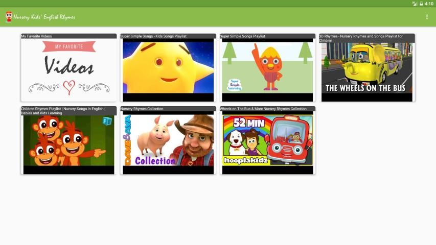 الحضانة القوافي هو التطبيق الفيديو الانجليزية يوتيوب الحر القائم للأطفال الرضع والأطفال وأطفال الحضانة من جميع الأعمار لمشاهدة بهم القوافي المفضلة، التهويدات والرسوم المتحركة باللغة الإنجليزية. هذا الحر القوافي الانجليزية الحضانة التطبيق يحتوي على أحدث والأكثر إثارة للاهتمام القوافي، وأشرطة الفيديو، التهويدات والقصص والرسوم للاستيلاء على اهتمامكم حضانة طفل والحفاظ على مشاركتهم القوافي.
