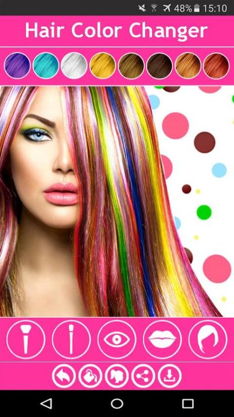 2. الشعر مبدل: تغيير لون الشعر في صورك مع colorizer الشعر. العديد من الألوان الشعر من شعر الأشقر إلى بورجوندي ألوان الشعر يمكن تطبيقها.