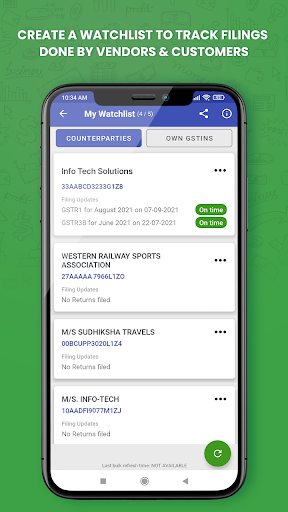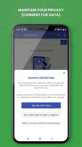 وكل هذا مجمع مع وعد بخصوصية كاملة وسرية. راقب امتثال GST الخاص بك لاتصال آمن بنظام GST. يضمن جلب البيانات المدفوعة OTP - يتم عرض بياناتك من قبل أنت فقط! نحن لا نقوم بتخزين أي من بياناتك!